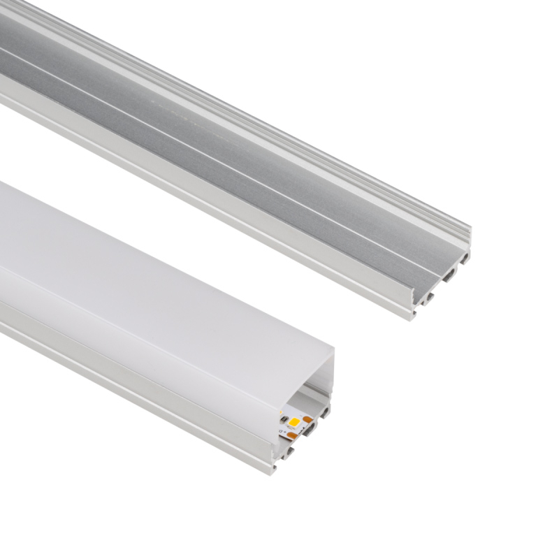 En rigtig flot profil med høj opal beskyttelsesplast, der giver et jævnt lys både fremad og sidelæns. Profilen er 26 mm bred, hvilket betyder, at du også kan bruge denne profil til Philips Hue LED-tape.
