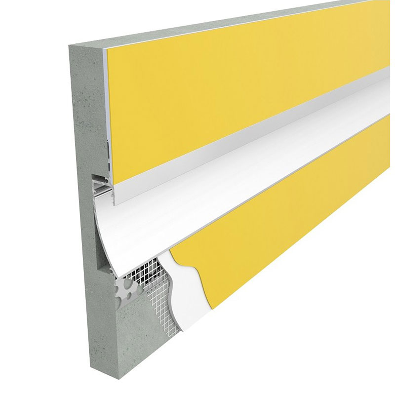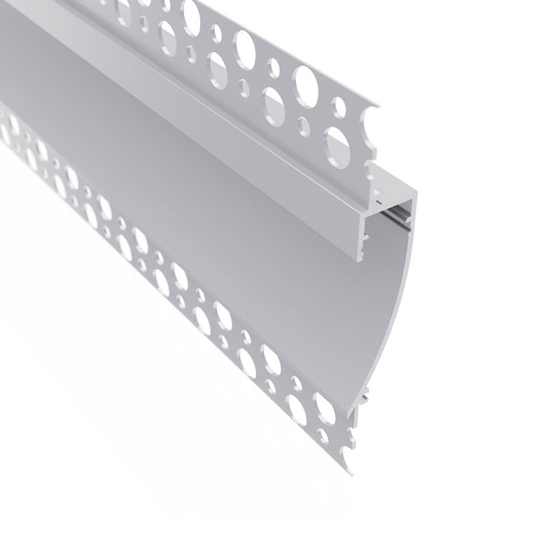 Aluminiumprofil til LED-strips til indirekte lys. Profilen har ekstra lange vinger, så den kan foldes stabilt ind i gipsplader.
