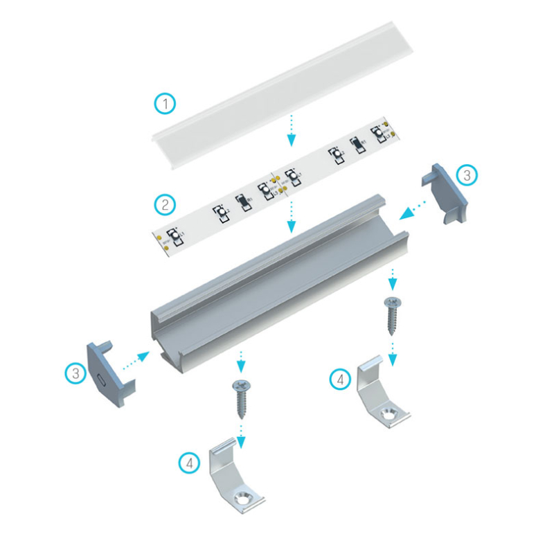 Fås i fire forskellige farver og to forskellige standardlængder, 1m og 2m. Aluminiumsprofilerne kan nemt skæres til med en hacksav til den ønskede længde.