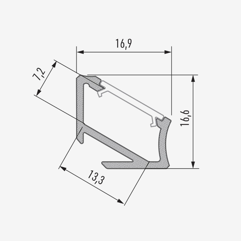 Trekantet profil, der leder lyset 30 eller 60 grader afhængigt af hvordan det er monteret.