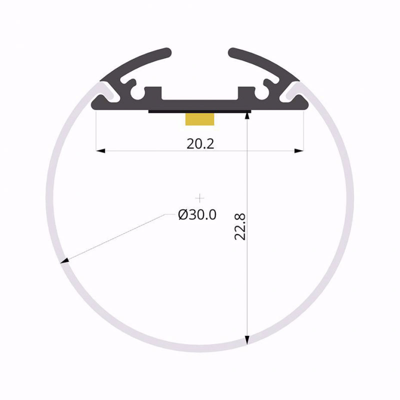 Med denna runda profil för ledstrips kan man bygga ledlister som liknar lysrör. Funkar i tak och på vägg. Passar till exempel i nattklubbar, barer och gallerier där man önskar lysrörs-effekt