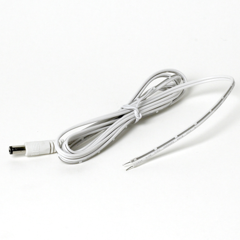 Beskrivelse DC-stik 2,1 mm hun med 1,5 m hvid ledning.