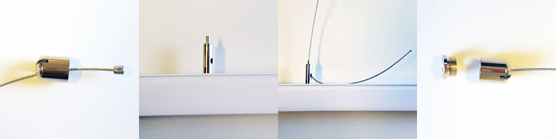 Vi tilbyder et ekstra smart wirekit for en nemmere montering af ophængte skinner. Den aflange cylinder låser automatisk wiren, og du behøver derfor ikke at rode med skruer osv, for at låse wiren til den længde, du gerne vil have. Det er bare at trække i wiren til den ønskede længde.