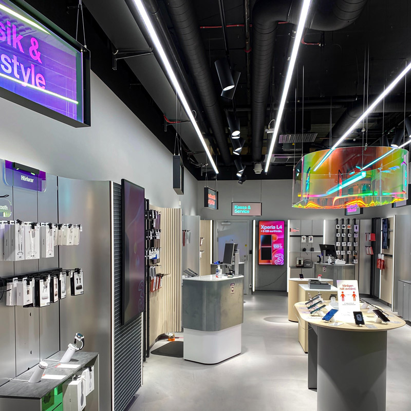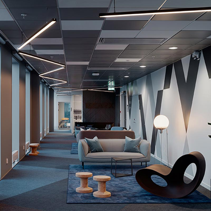 Vi levererar skräddarsydd LED-belysning som byggs in i inredning och tak i offentliga miljöer som butik, restaurang, kontor, hotell & mässa.