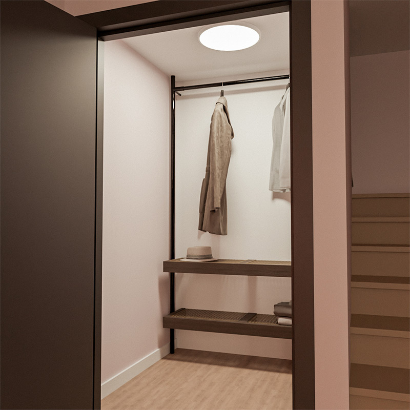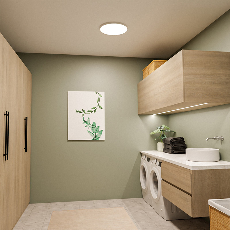 Plafond ARK 400mm er et stilfuldt slankt armatur til almen- og miljøbelysning. Kan monteres i loftet eller som pendel med det valgfrie pendel-sæt. Armaturet er meget tyndt, kun 24 mm, hvilket gør det til en stilfuld slank lampe, der er velegnet til både loft- og pendellamper. Velegnet til almen belysning på kontorer, i korridorer, opholdsrum og andre offentlige områder.