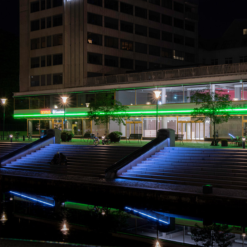 Vi levererar skräddarsydd LED-belysning som byggs in i inredning och tak i offentliga miljöer som butik, restaurang, kontor, hotell & mässa.