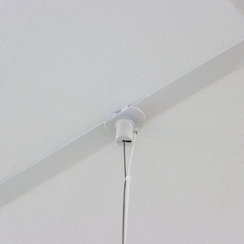 Takfäste för innertak med bärverk som är 24mm brett. På takfästet sitter en fingerborg som kan användas för att enkelt och snyggt fästa ett vajerkit.