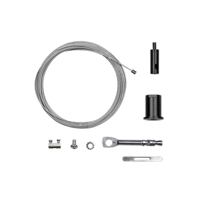 Svart vajer kit för upphängning av nedpendlade armaturer och skenor.